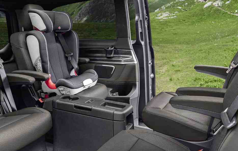 V-Serisi, 2019 itibariyle yeni bazı sürücü asistanı teknolojilere de kavuşuyor. Örneğin opsiyonel aktif fren asistanı, minibüsü tamamen durdurmadan önce sesli bir uyarı da veriyor. Otomatik uzun far asistanı da karanlık yollarda karşıdan araç gelmiyorken daha iyi bir aydınlatma sağlıyor.